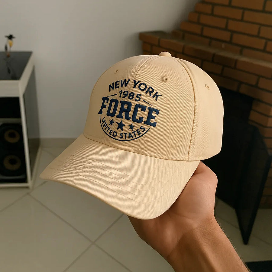 O New York 1985 Force carrega uma estética clássica inspirada na força urbana e na tradição americana.